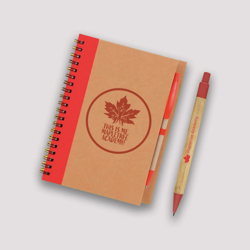 Material Institucional - Creamos una libreta y una pluma que comunican la esencia del colegio: orden, calidez y un diseño educativo con intención.